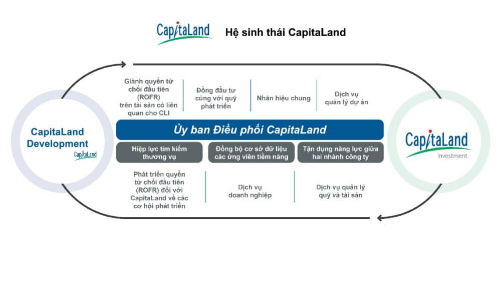 Trong hệ sinh thái của tập đoàn, CapitaLand đã phát triển cơ chế tích hợp lĩnh vực quản lý đầu tư và năng lực vận hành, nhằm hỗ trợ hoạt động kinh doanh và nền tảng bất động sản của tập đoàn trong việc xây dựng năng lực cốt lõi trên toàn bộ chuỗi giá trị bất động sản. Với năng lực toàn diện này, CapitaLand có thể tối ưu hóa các chiến lược của công ty quản lý đầu tư bất động sản được niêm yết là CapitaLand Investment, và nhánh phát triển bất động sản được tư nhân hóa là CapitaLand Development để thúc đẩy lợi thế cạnh tranh cho các hoạt động kinh doanh của tập đoàn.